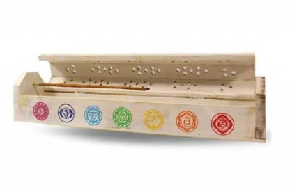 Coffret Tiges d’encens en bois 7 chakras blanc
